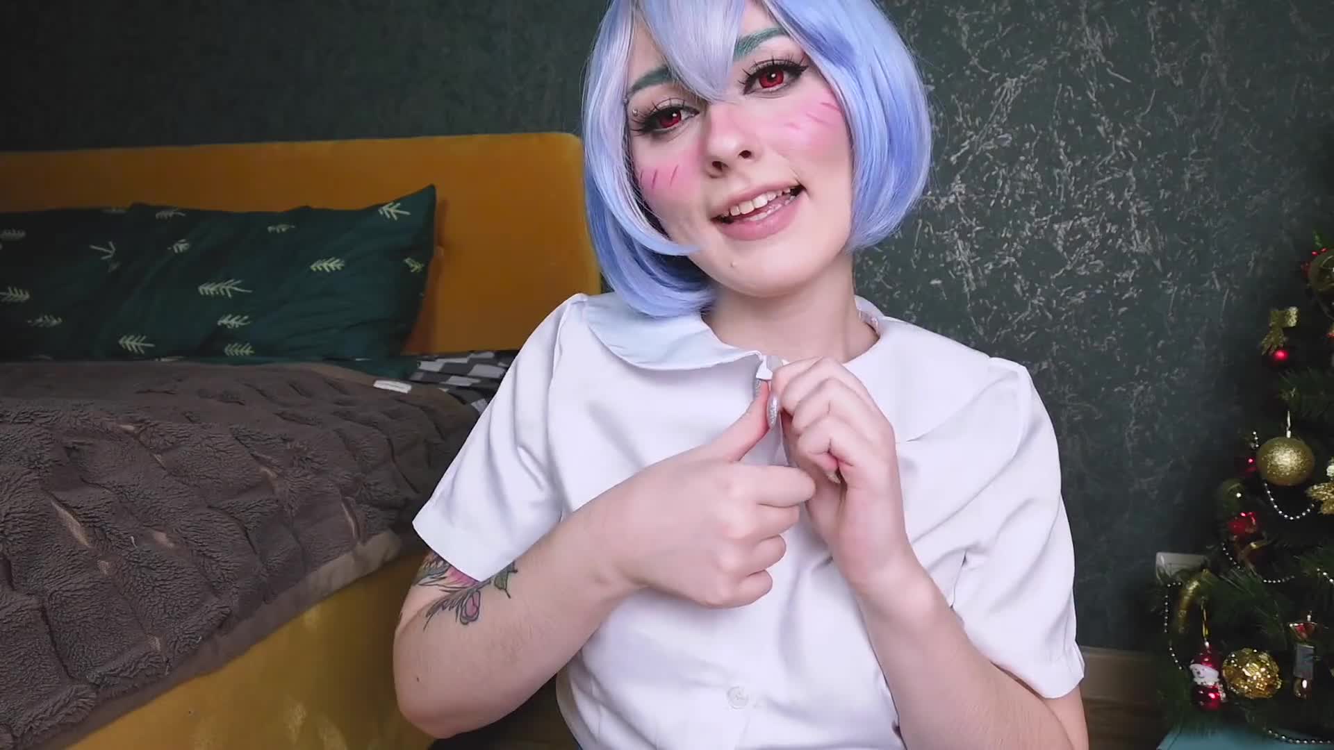 Rei Ayanami found her Christmas gift under c Christmas tree - Cosplay Bad dragon Spooky Boogie